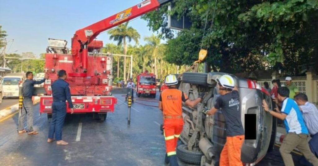 မတော်တဆမှုဖြစ်ပွားသည့် ယာဉ်မှာ ပက်လက်လှန်အနေအထားဖြင့် တိမ်းမှာက်ခဲ့သဖြင့် မီးသတ်တပ်ဖွဲ့ ကရိန်းအသုံးပြုကာ ကူညီကယ်ဆယ်ရေးလုပ်ငန်းများဆောင်ရွက်ခဲ့ကြောင်း သိရသည်။